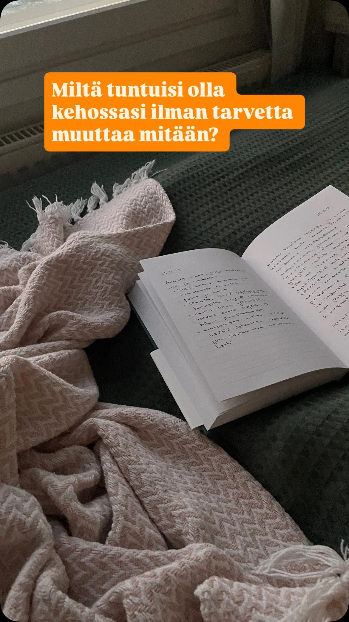 Täällä saat pysähtyä oman kehosi äärelle – uteliaasti, turvassa ja ilman suorituspaineita.”